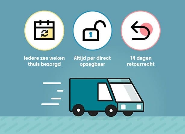 Maak gebruik van onze introductieaanbieding en betaal voor de eerste zes weken slechts € 9,95. Bovendien profiteert u van 30% korting op iedere vervolgzending met onze Automatische Bezorgservice.